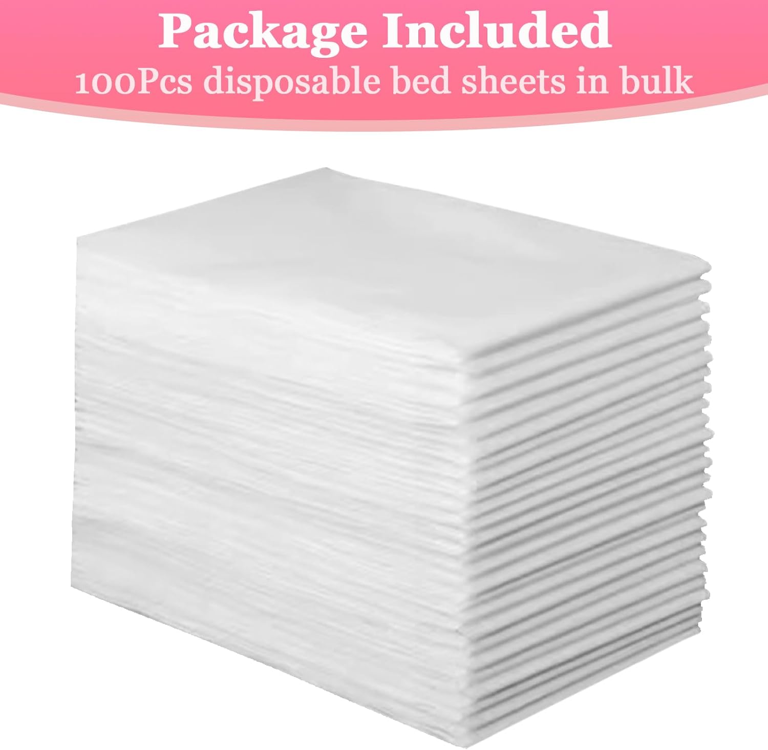 Package: including 100 pieces of disposable white bed sheets, the size of the massage table sheet is 31.5″ X 71″ which suitable for most massage tables.
