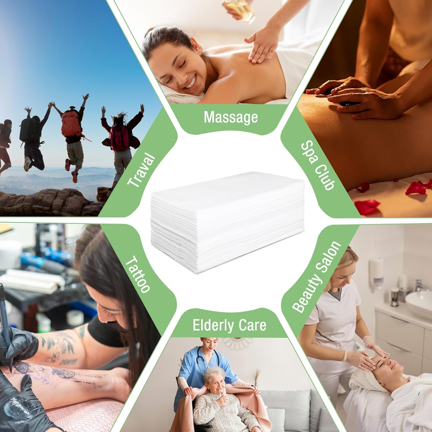 Meet Daily Needs: Contains 100 white disposable massage sheets, enough to easily cope with various usage scenarios, and can provide enough replacements to provide customers with a more hygienic service environment to ensure that each service is a clean and comfortable start.