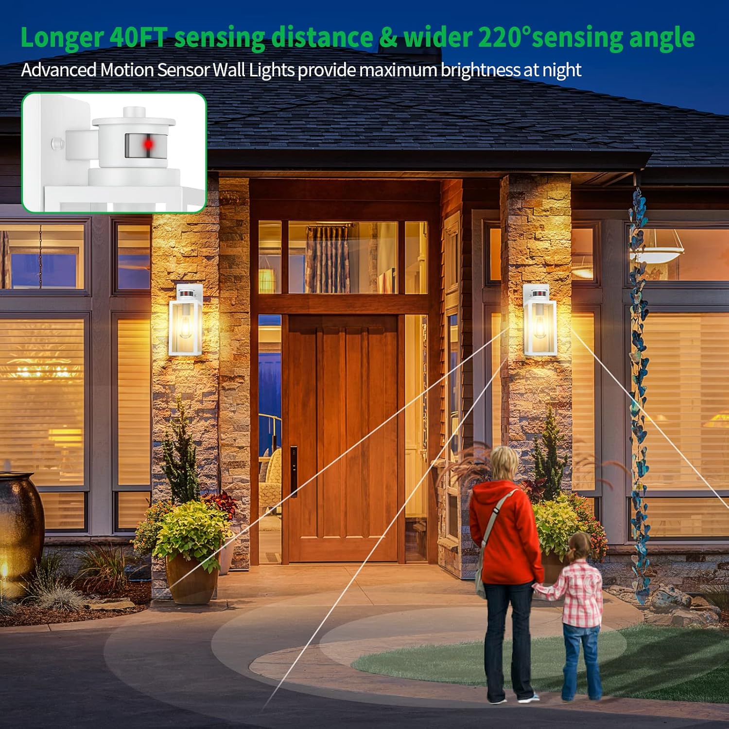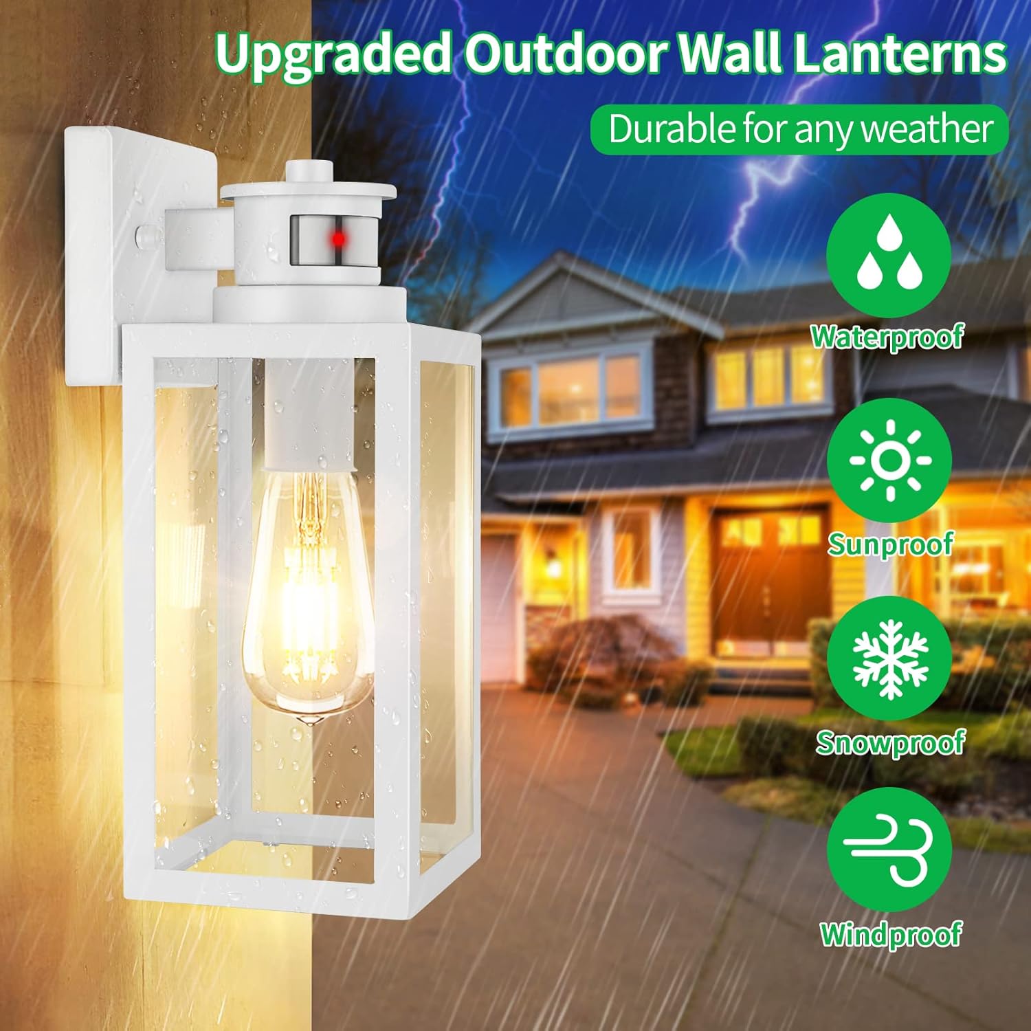 TOBUSA 2-Pack White Motion Sensor Wall Lanterns