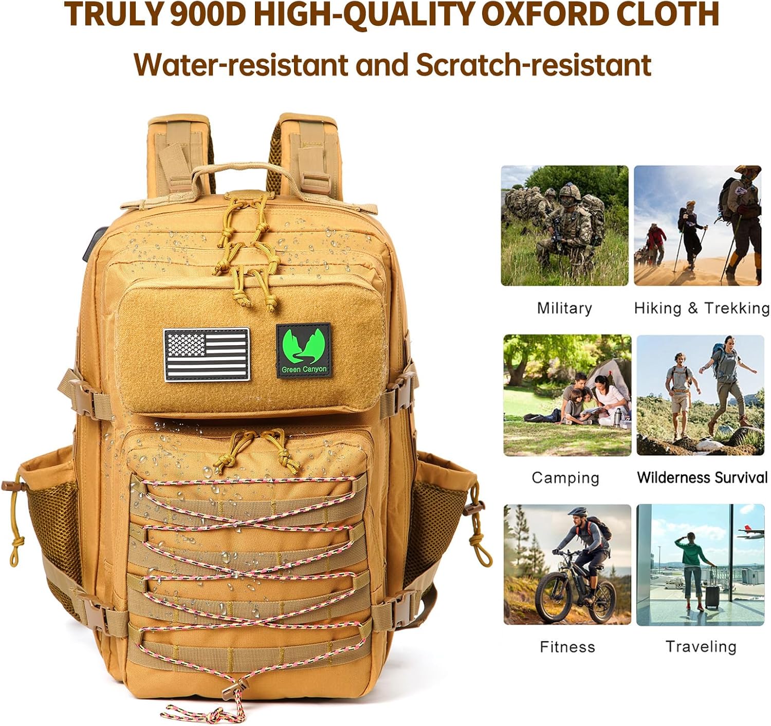 900D Durable Waterproof Material: This assault backpack is made of high-quality 900D Oxford nylon fabric, which is water resistant, scratch resistant, and all stress points are reinforced with double needle sewing, making it durable and comparable to military grade backpacks. If you are an outdoor enthusiast, wilderness explorer, hiker, camper, truck driver, construction worker, police officer, firefighter, school senior, or nurse, then it is suitable for you.