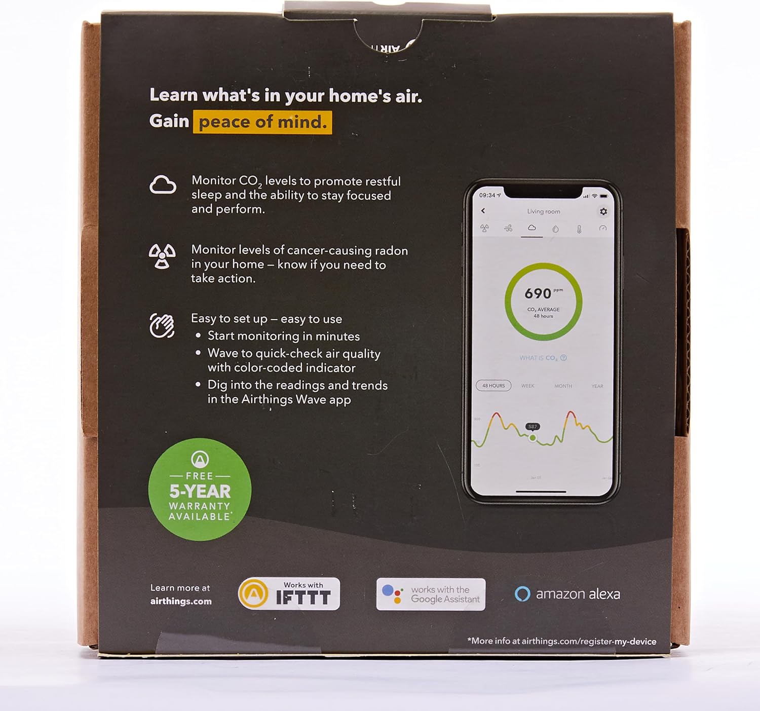 WHAT YOU GET: Airthings Wave Plus, 2 AA batteries, Quick Start Guide, Airthings Support and optional and free 5-year extended warranty to increase your standard product warranty.