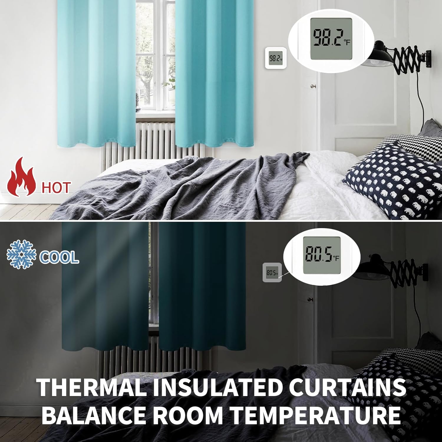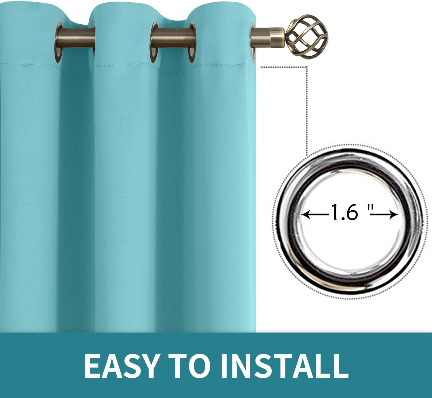 Package Includes: Set of 2 aqua blackout curtains; Each panel measures 42 Inch wide by 63 Inch long.