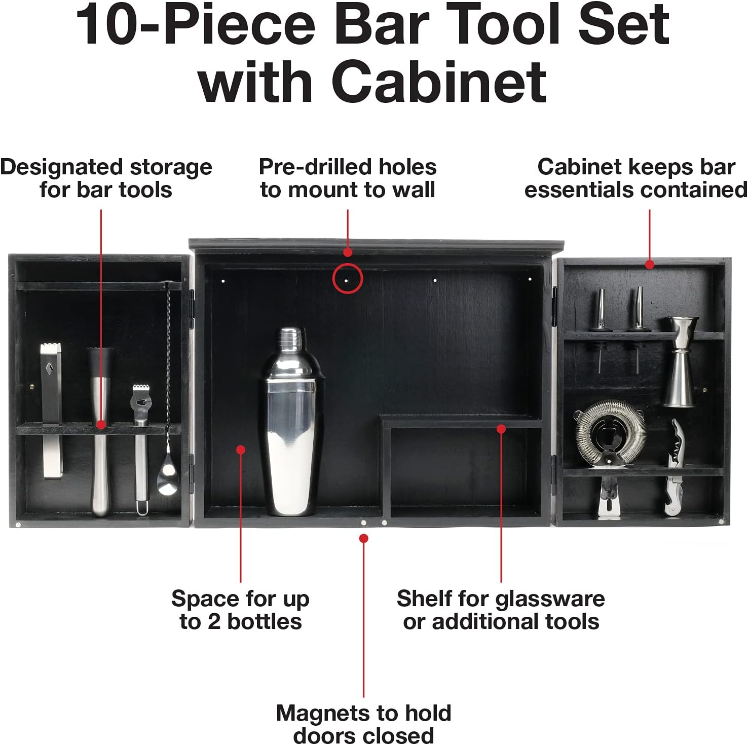 Be the first to review “Excello Global Products Barndoor Bartender Cabinet with 10 Piece Bar Tool Set: The Perfect Kit for Home Bartenders (Black)” Cancel reply
