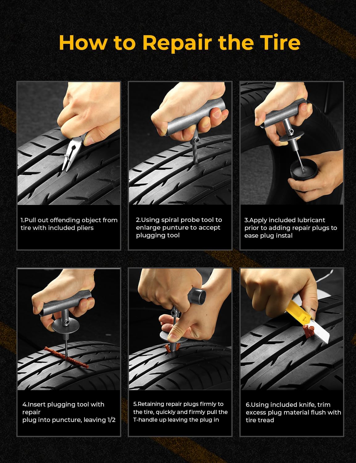 Professional Quality: The AUTOWN tire repair kits are made of refined high-quality steel and upgraded to comply with exacting standards of audit. This ensures that the kit is of professional quality and can repair even the toughest tires on the market.