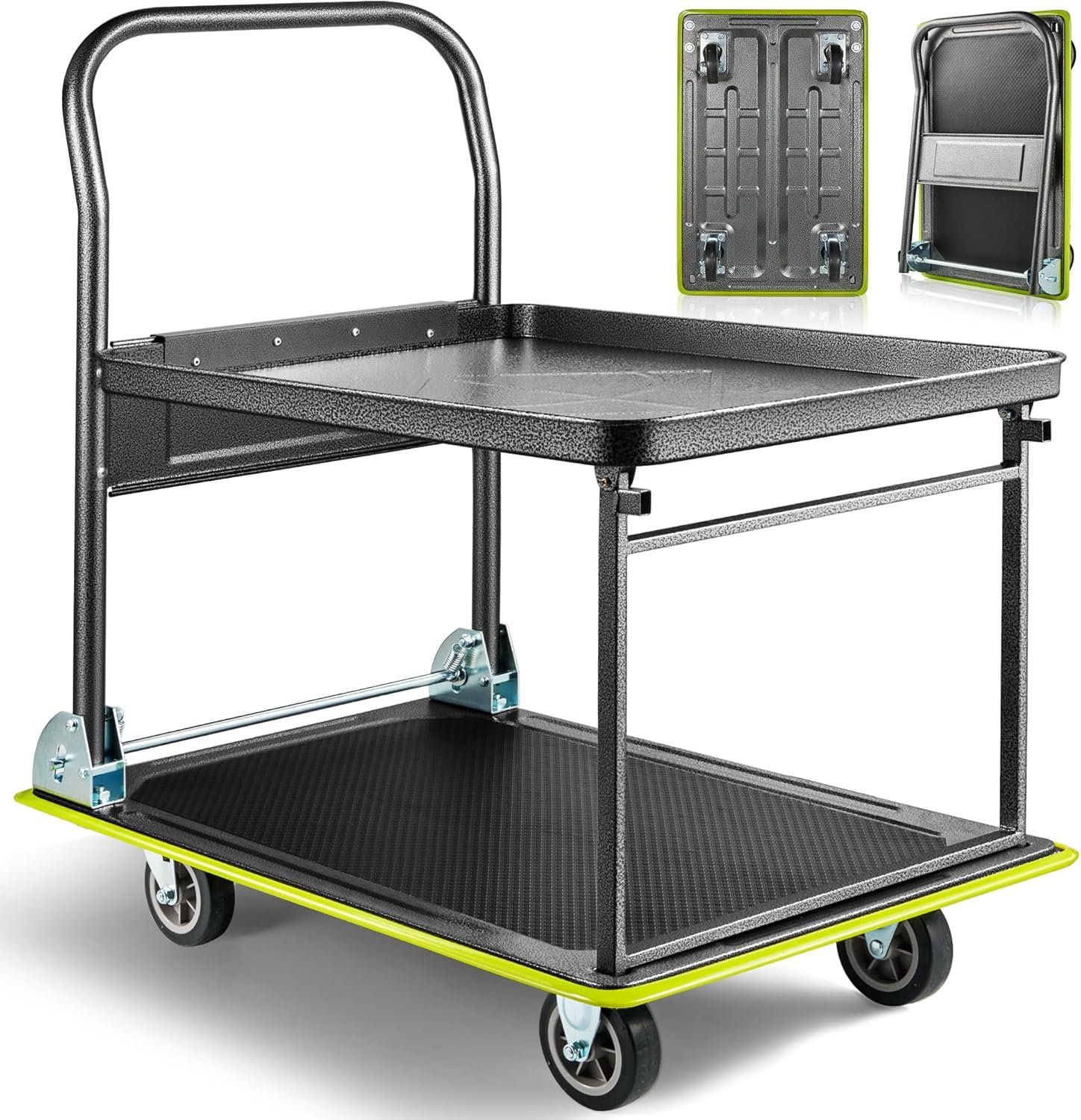 【700Lbs Strong Bearing Capacity】: Keoslpy platform truck cart is made of high-quality high-strength steel, rust-proof & corrosion-resistant, ensuring long-term use. 28.75″Lx 18.5″W Push cart dolly can easily carry 700lbs of heavy loads, Even if the upper layer carries 100 lbs of heavy loads and the lower layer carries 600 lbs of heavy loads, it can also be transported stably and efficien.