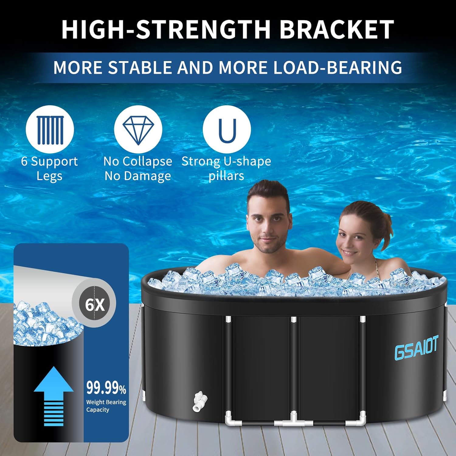 RELIABLE INSULATION: Made of sturdy 6-layer insulation and tear-resistant materials, the cold water bath plunge tub will not crack or bend, and is durable. Excellent insulation allows the ice bath to stay colder longer, whether it is recovery or relaxation, our ice bath tub can provide a safe and durable solution for your therapeutic needs.