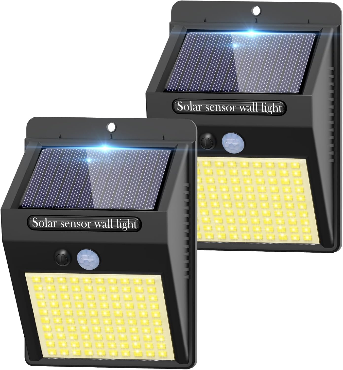 kolpop 2 Pack Solar Motion Lights Outdoor, 3 Modes/100LED Solar Security Lights Wireless IP65 Waterproof Solar Wall Lights Outdoor Lights for Front Door, Backyard, Garage, Deck(Warm White) WS05Y-2