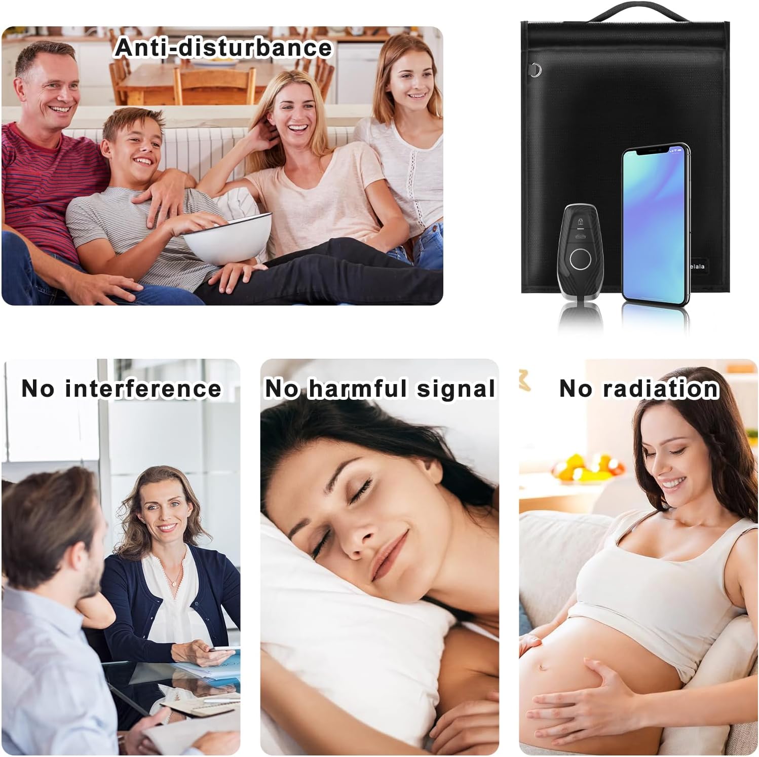 【Set of 5 Faraday Bags】 1 x Large Capacity Laptop Faraday Cage (17 x 15 inches), 1 x Tablet Medium-sized Faraday Bag (13 x 11 inches), 1 x Radio Faraday Cage (11”x 8”), 1 x Cell Phone Faraday Pouch (8”x 5”), 1 x Car Keys Small-sized Faraday Pouch (5.5*x 3.5″) , you can put laptop, tablet and office documents, keychains, cell phones, cards, cash and so on into the Faraday bags, you can choose the right bag to put what you want.