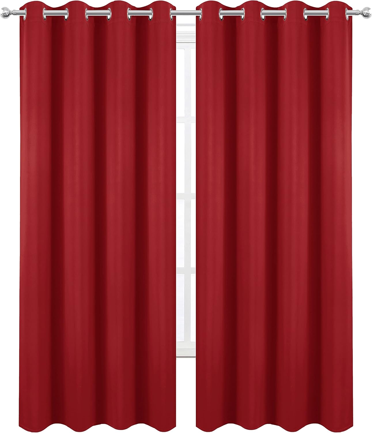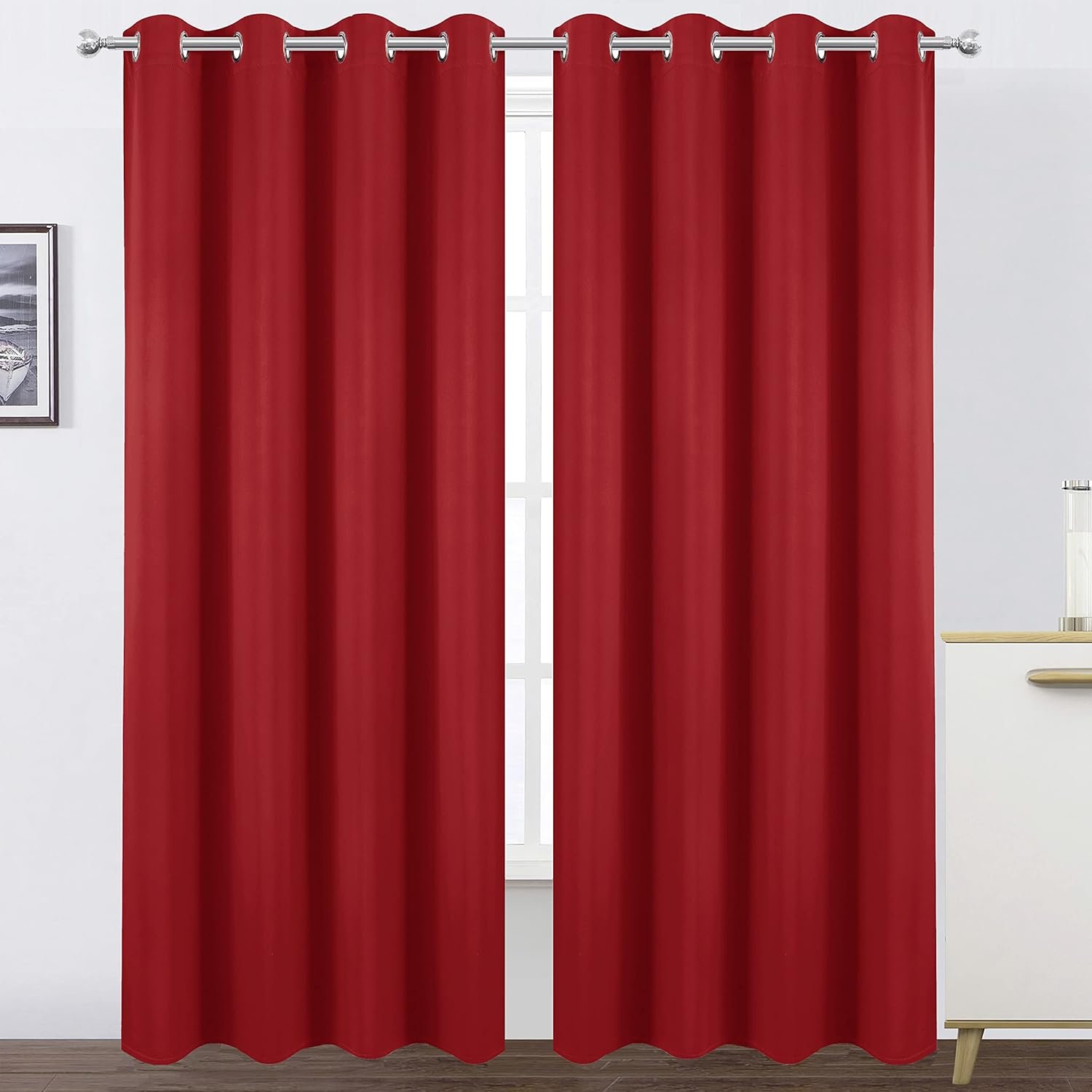 Package Includes: 2 bright Red curtain panels, each blackout curtain measures 52 inch wide and 84 inch length constructed with 8 silver grommets measuring 1.6 inches inner diameter