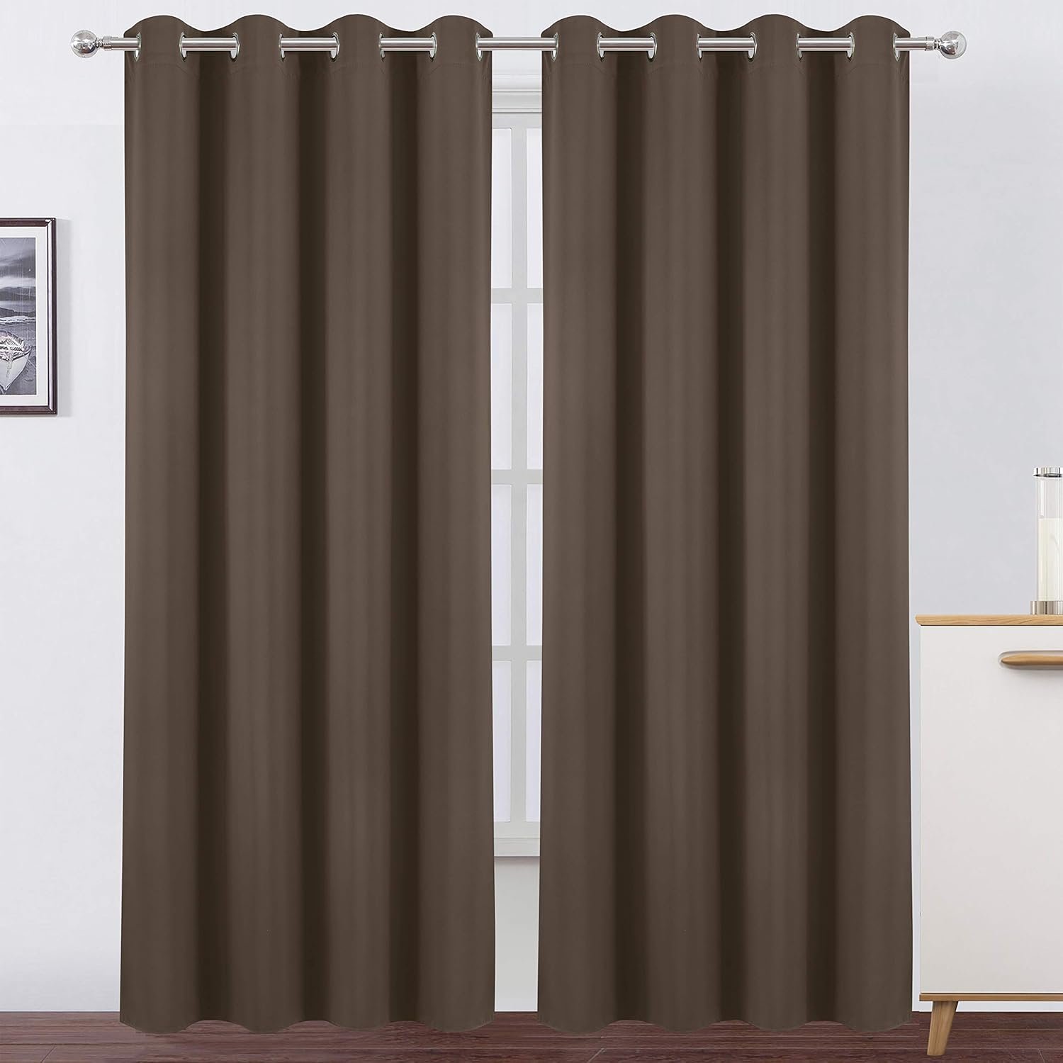 Package Includes: 2 chocolate brown curtain panels, each blackout curtain measures 52 inch wide and 84 inch length constructed with 8 silver grommets measuring 1.6 inches inner diameter