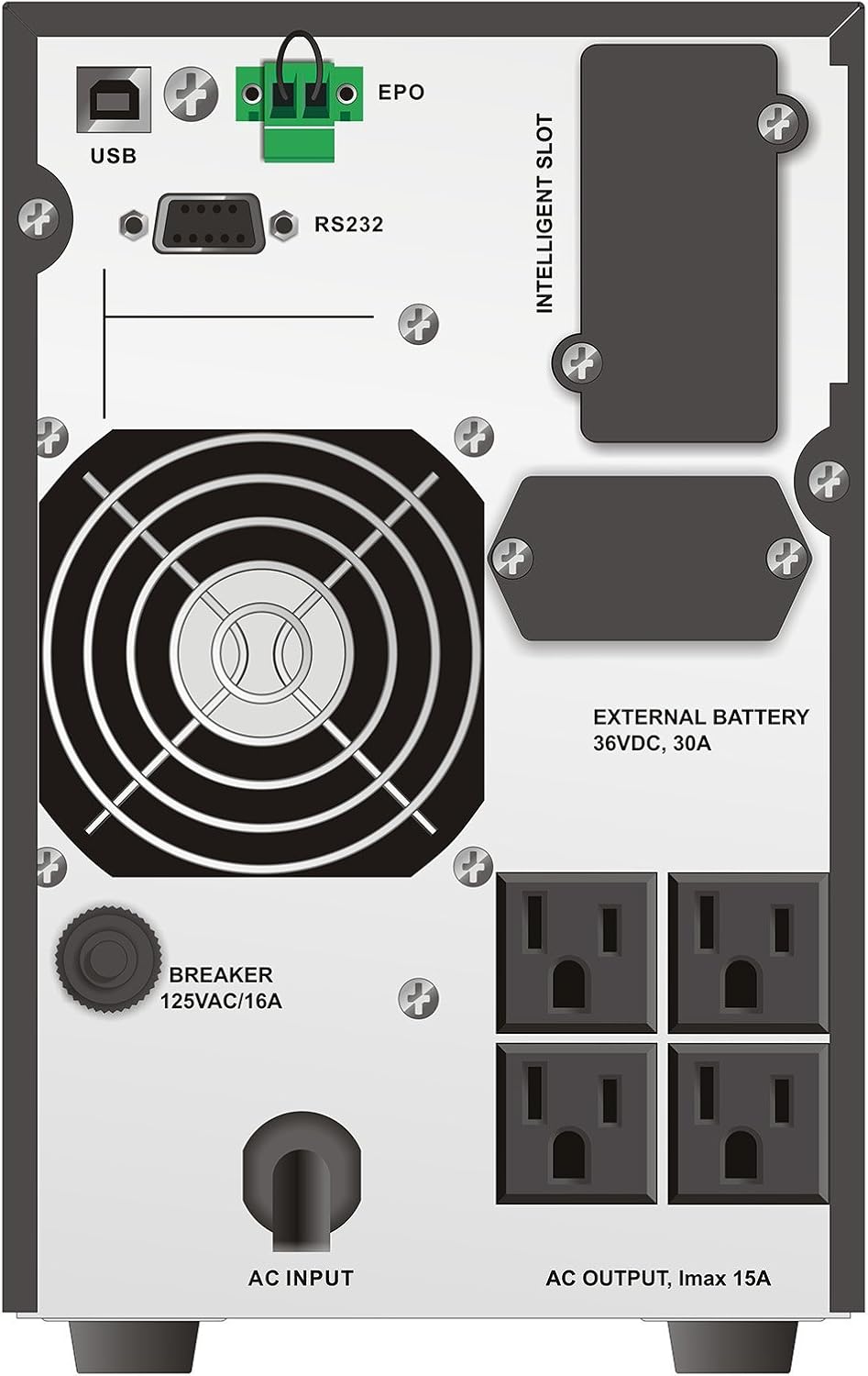 DSP Controlled Technology & Active PFCDigital Signal Processor (DSP) controlled technology for high reliability, accuracy, and efficiency.Active Power Factor Correction (PFC) improves the power factor and power quality of the UPS by reducing harmonic distortion on the electrical system to improve energy efficiency and reduce energy loss. Additional benefits include active wave shaping of input current, low voltage drop, filtering high-frequency switching, waveform control through feedback sensing from the power source, and regulation of output voltage based on feedback control.Wide Input Voltage Range & Frequency Tolerances – Minimizes the need to switch over to battery power and frequency of battery charge and recharge cycles by correcting extreme voltage distortion for higher system reliability.Output Voltage Regulation – The output voltage maintains a fixed 1% output voltage regulation even when parameters such as ambient temperature change. A precise output voltage is most important for sensitive electronic equipment such as ones that require calibration.Optional Add-Ons & AccessoriesIntelligent Slot for Optional Network Management Card (not included) – Remote power management option with an add-on NMC card. See ASIN # B096WC4ZYB for the network card for this series.Optional Backup Time Expansion – Add up to 3 external battery banks for extended runtime.