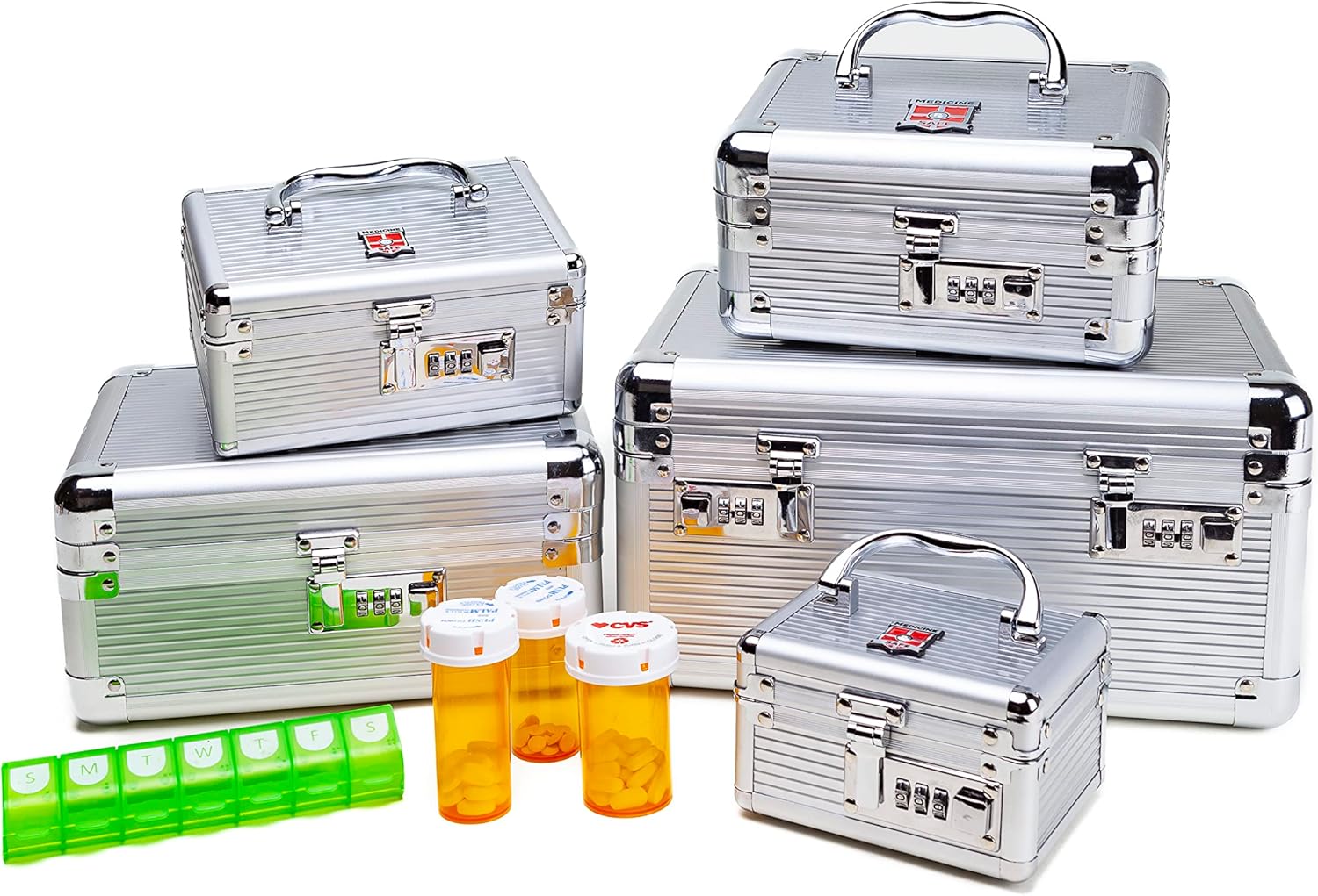The Medicine Safe Medication Carrying Cases come in 5 sizes and offer a perfect solution for protecting and storing your medication. Each case is secured by a 3-digit combination latch style lock, with the Large size incorporating 2 locks.