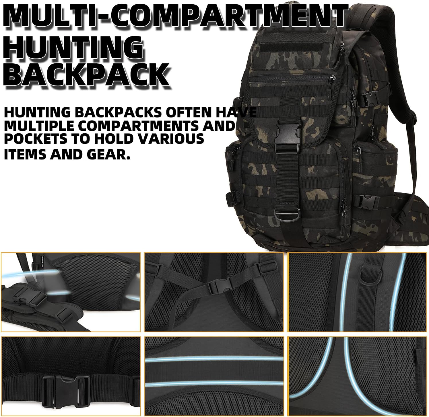 【Cushioned and Breathable Design】This men’s backpack has adjustable breathable mesh shoulders with rich foam padding and widened S-shaped shoulder straps, suitable to be used as military backpacks, hiking backpacks, large military backpacks, 3-day assault backpacks, extended space backpacks, outdoor gear backpacks.