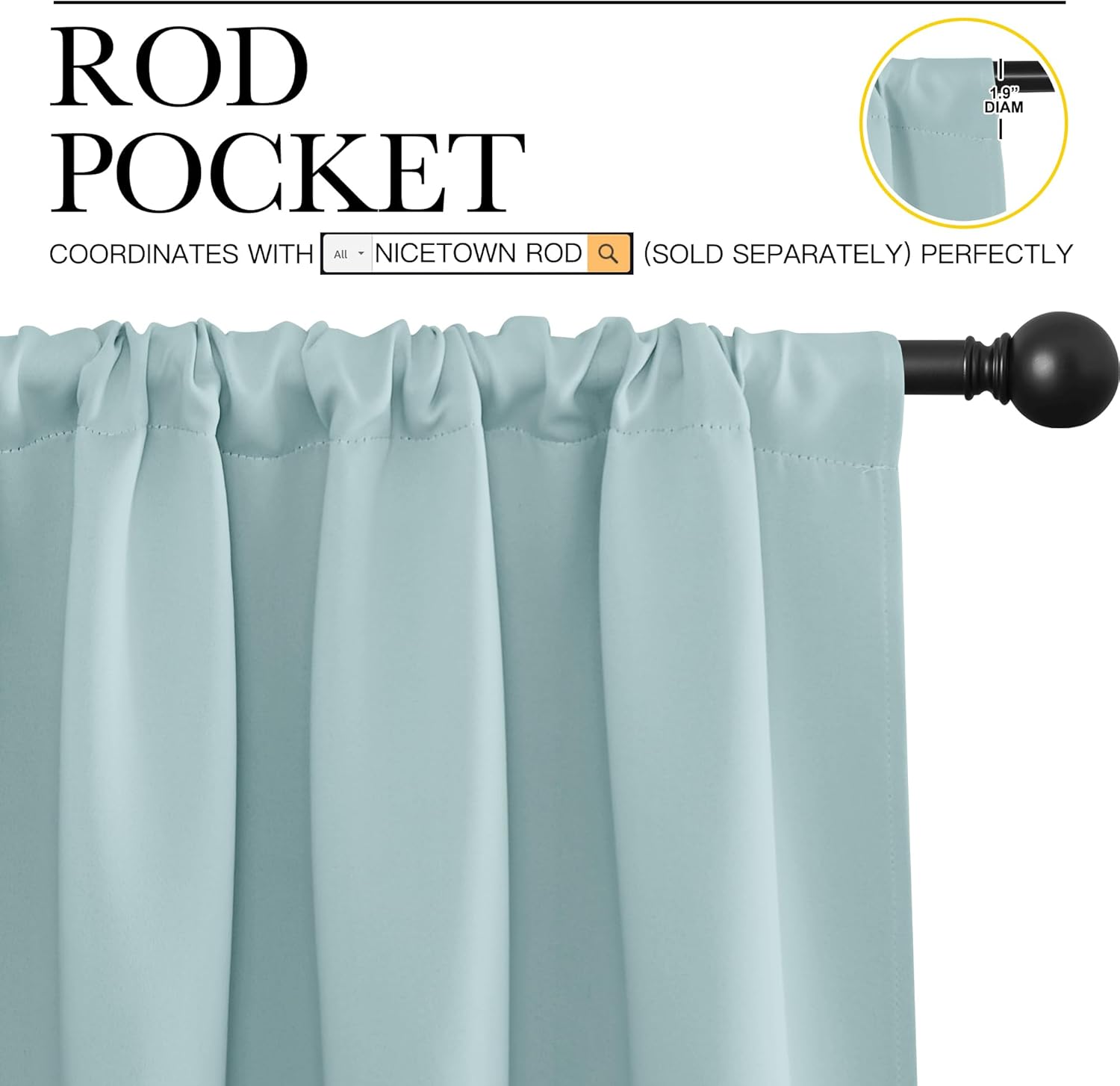 ELEGANT DESIGN: 2 panels per package. Each Blackout Curtain Panel measures 42 inches wide x 63 inches long. The NICETOWN drapery is constructed with rod pocket, fitting the curtain rod of your choice up to 2 inches in diameter, making the curtains easy to install and slide.
