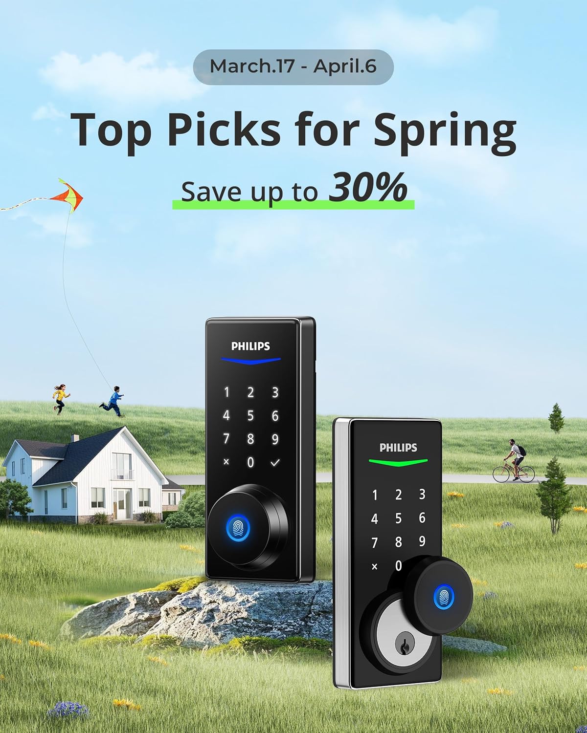 Fingerprint Door Lock: This Philips keyless entry door lock uses a biometric fingerprint scanner with an accuracy rate of up to 99.99%. It takes just 0.3 seconds to recognize your fingerprint, saying goodbye to the trouble of wasting time looking for keys.