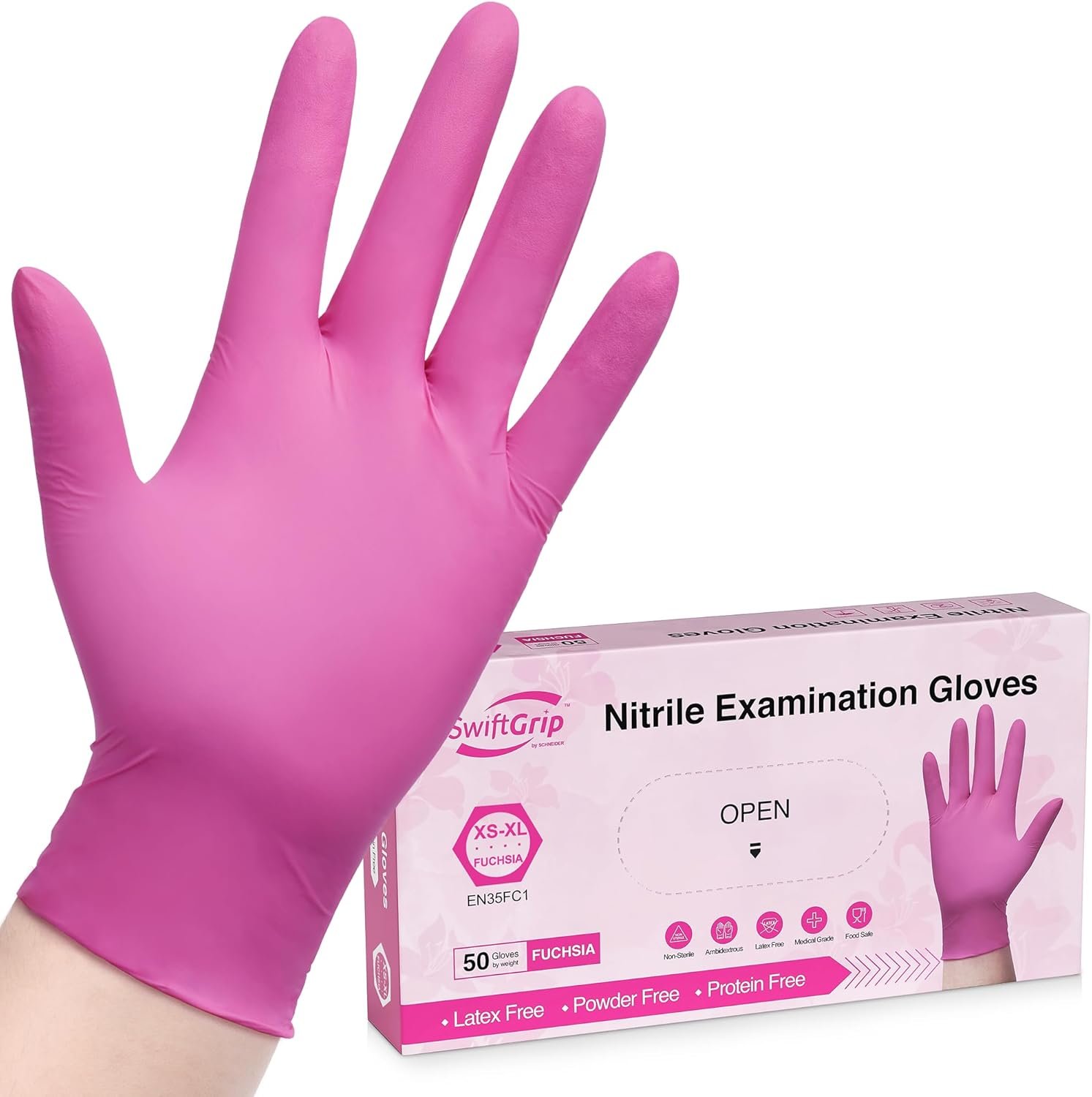 SwiftGrip EN35F Fuchsia Color Disposable Nitrile Examination Gloves good for animal and pet careSwiftGrip EN35F Fuchsia Color Disposable Nitrile Examination Gloves good for animal and pet care