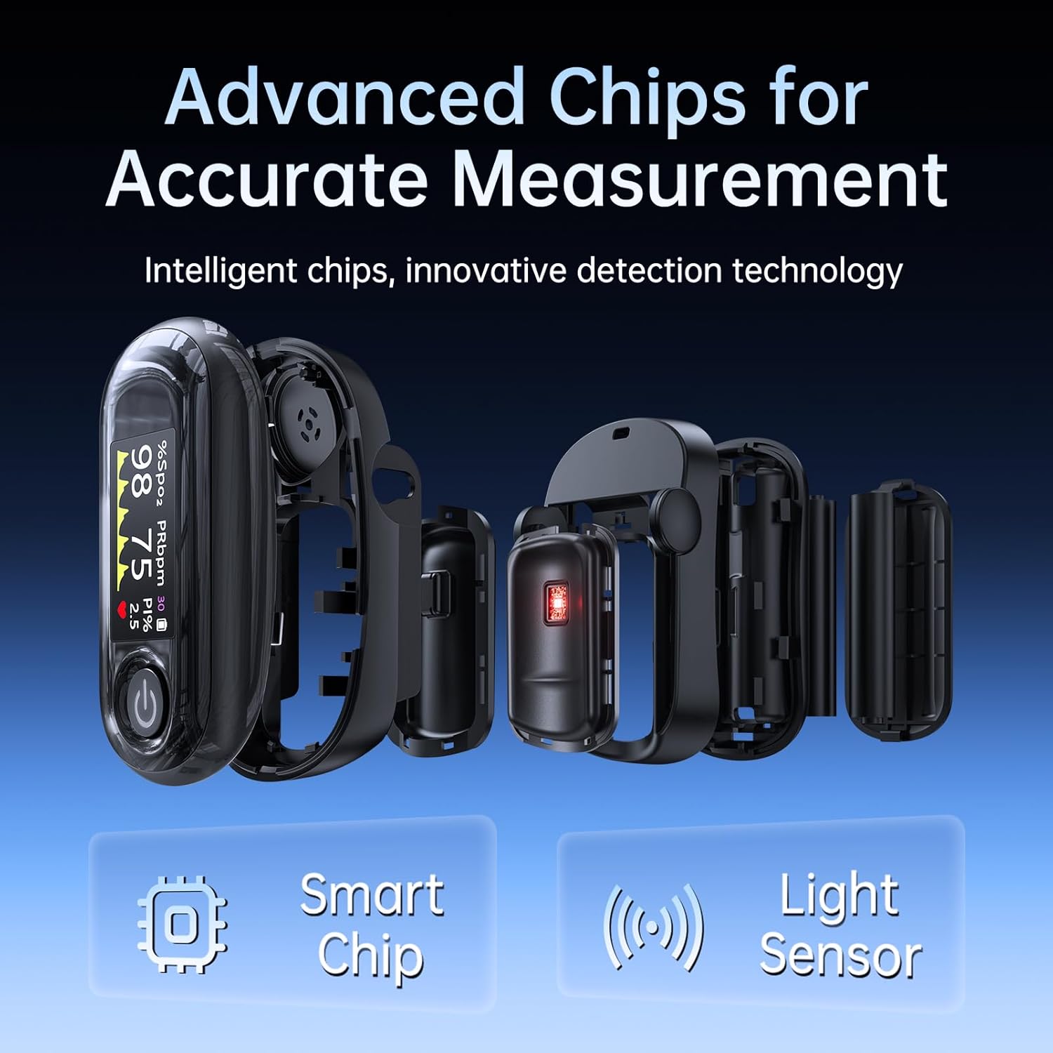 Pulse Oximeter, 4 Color OLED Display Oxygen Monitor Fingertip with 20 × Memory, Blood Oxygen Saturation Monitor (SpO2), Alarm & Brightness Adjustable, Batteries & Lanyard (Black)