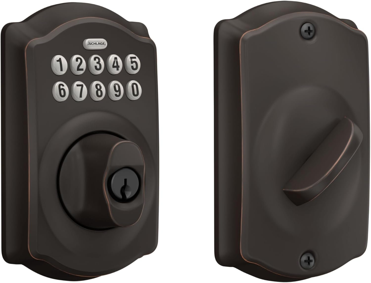 Be the first to review “Schlage BE365 V CAM 716 Camelot Keypad Deadbolt, Electronic Keyless Entry Lock, Aged Bronze”