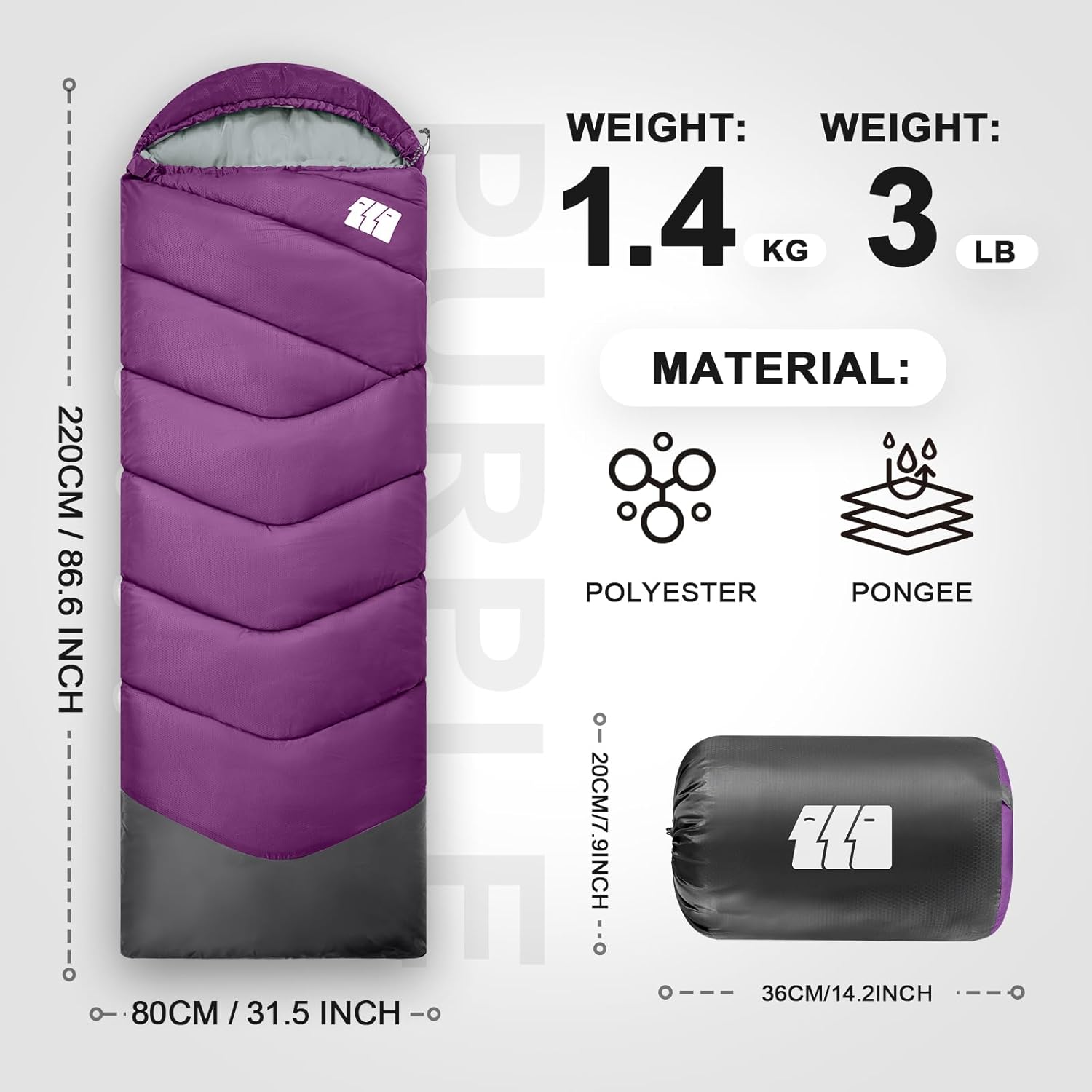 【SUITABLE FOR 3 SEASONS】 Designed Temperature rated for 50℉to 70℉. It’s perfect for spring, summer, fall, and cool weather. Recommended limit temperature: 40℉. High-quality and durable polyester ripstop fabric, stands up to years of use