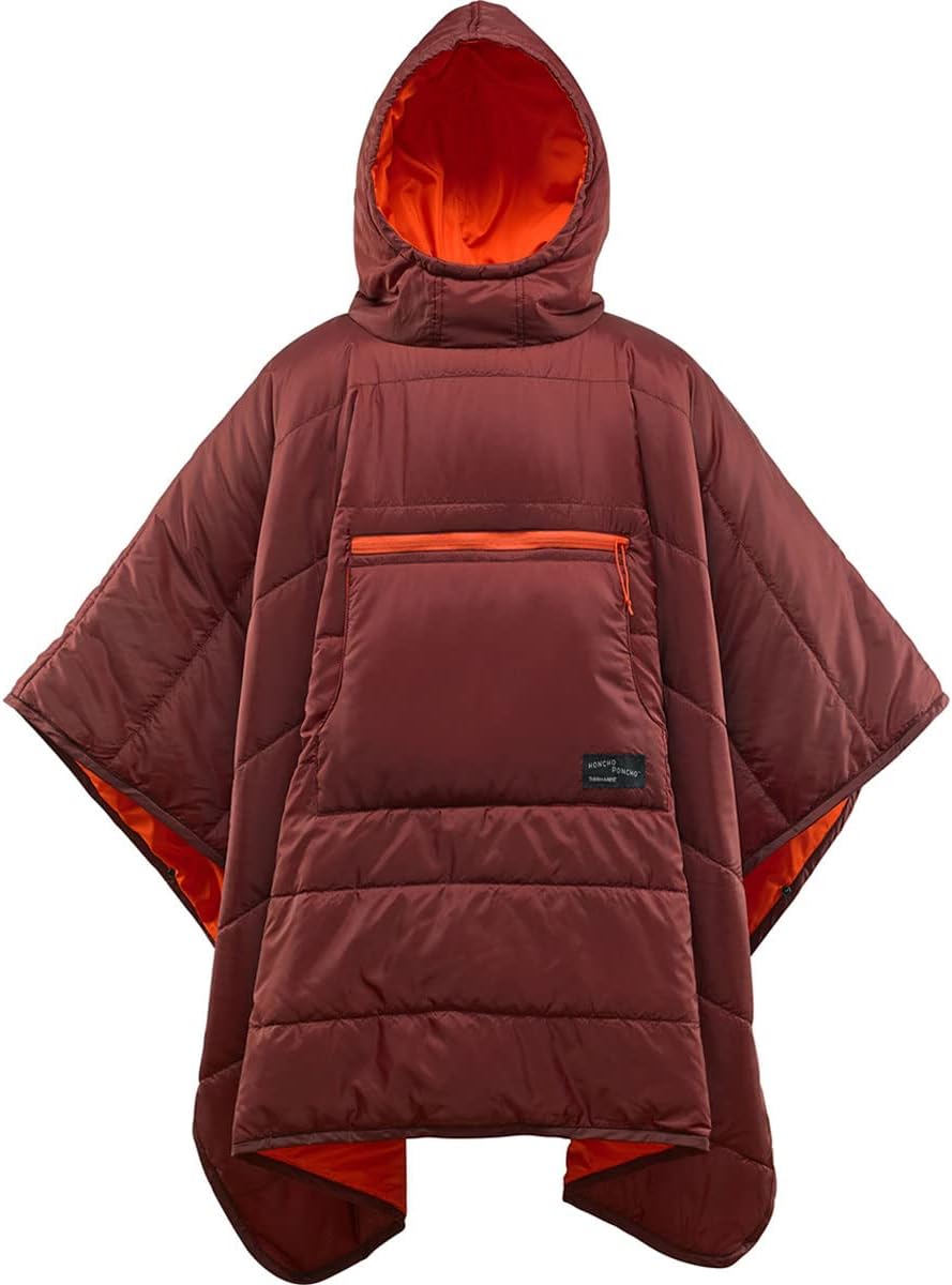 The Therm-a-Rest Honcho Poncho Wearable Hoodie Blanket does double duty as either a poncho or stylish blanket, offering extra warmth and water resistance for any outdoor activity. The Honcho Poncho’s efficient and compressible eraLoft insulation uses hollow fibers to reduce weight without sacrificing warmth, and offers a barrier against wind and rain with its water-resistant and breathable shell. Wear it while relaxing around camp before layering it with a sleeping system for extra warmth through the night. A kangaroo-style pocket warms hands with a top zip pocket for essentials, and the blanket packs into its own pocket for go-anywhere convenience. One size fits most. Measures 79×56 inches when laid flat. Weighs 1.5 pounds. Manufacturer’s limited lifetime warranty.