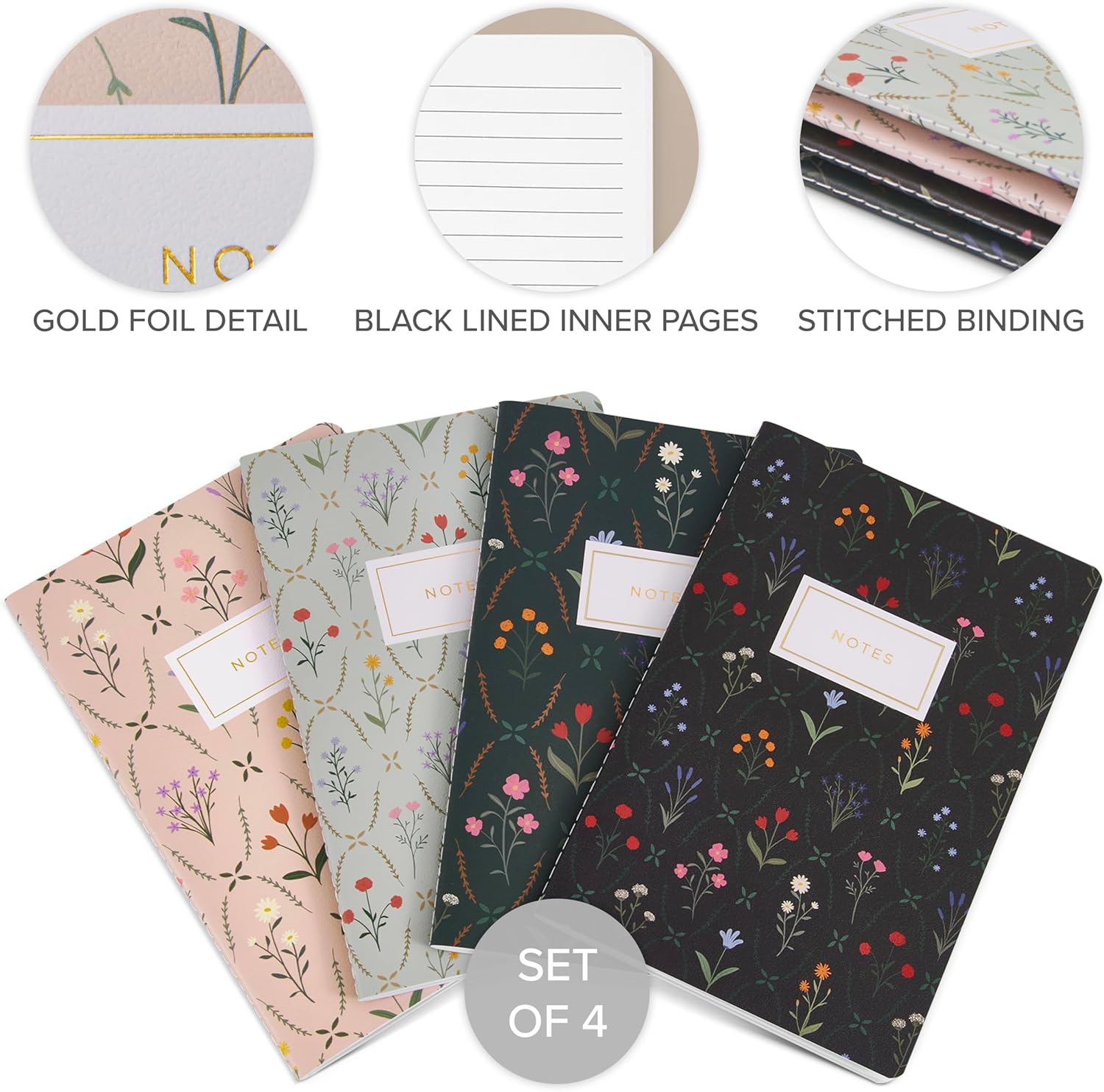 A Design To Let Your Creativity Blossom: From lightbulb moments to deep reflections, capture it all in style with the gorgeous blank notebook set of 4. Beautiful colors and charming floral designs, the small journal set adds some pizzazz to your everyday life